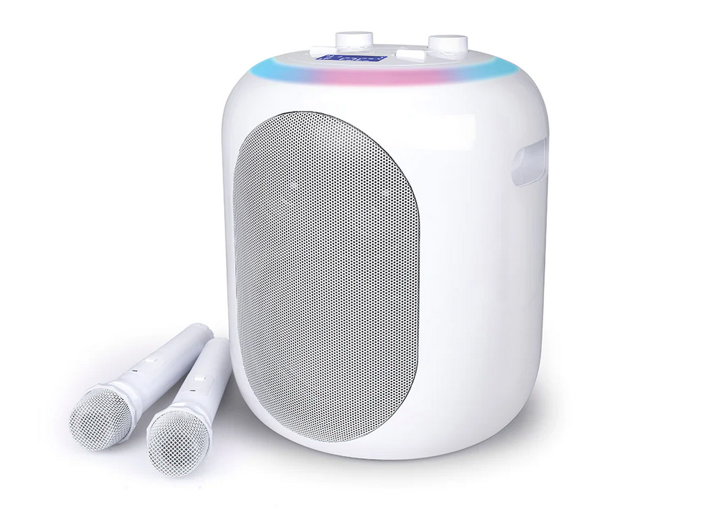 - Karaoke Machine: Bluetooth portable karaoke system, 2 wireless mics, 10 hours of battery life, music synchronized glowing light show